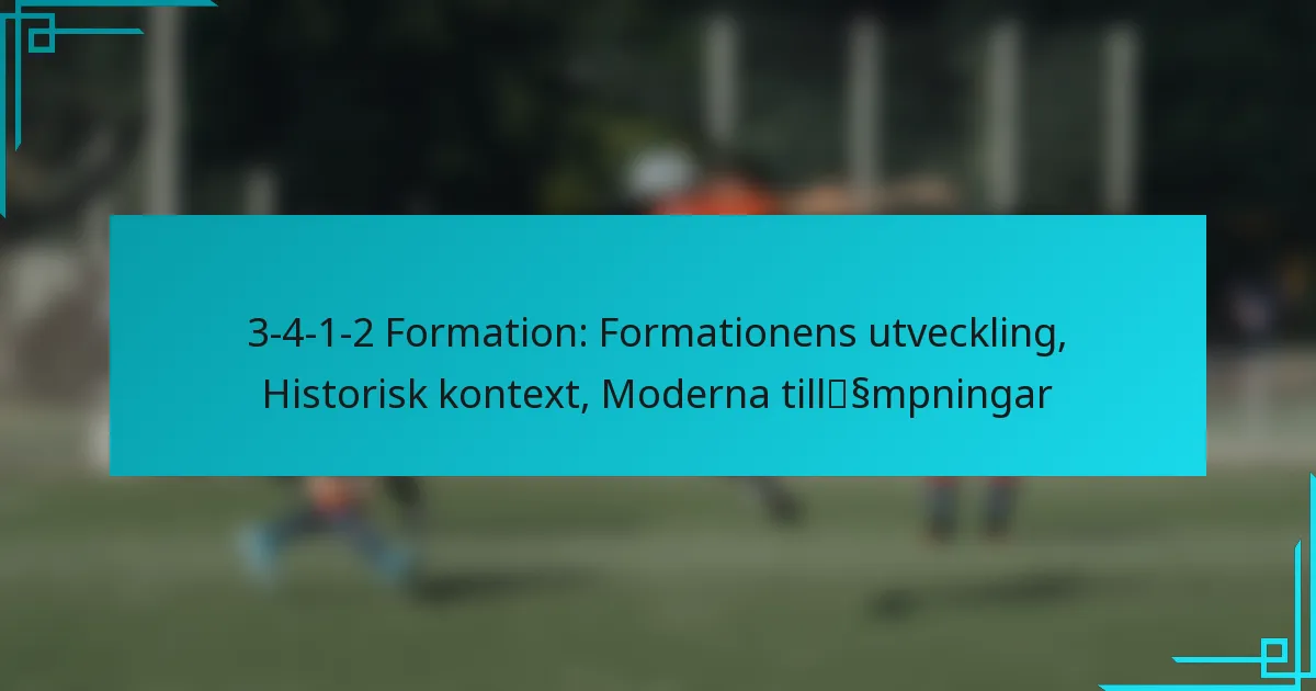 3-4-1-2-formationen är en taktisk uppställning inom fotboll som betonar en stark defensiv grund samtidigt som den möjliggör dynamiskt anfallsspel. Den har utvecklats sedan sin skapelse och har anpassat sig till förändringar i spelarroller och taktiska filosofier, vilket visar dess mångsidighet och strategiska påverkan på spelet.